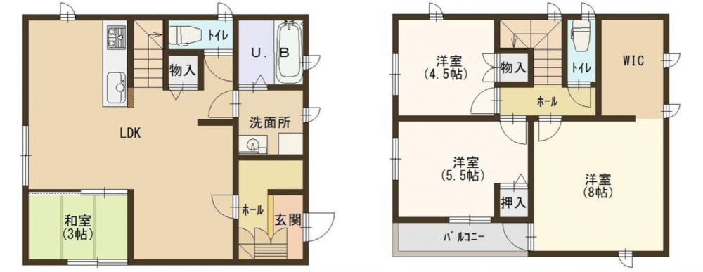 ★4LDK(和室3.0帖/洋室8.0帖/洋室5.5帖/洋室4.5帖/LDK15.5帖)