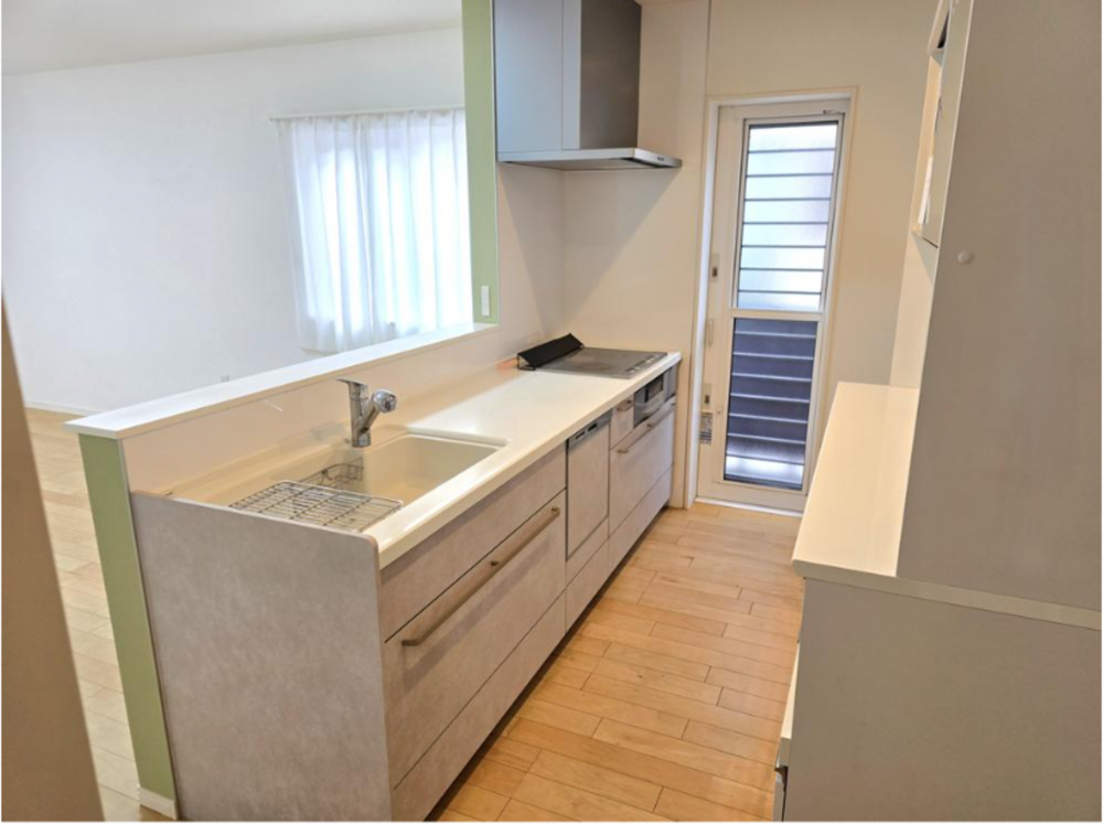 - 食器洗浄乾燥機、IHクッキングヒーター、シャンプードレッサー、洗浄便座、浴室乾燥機、駐車場2台分、トイレ2箇所、市街地が近い、対面式キッチン、テラス