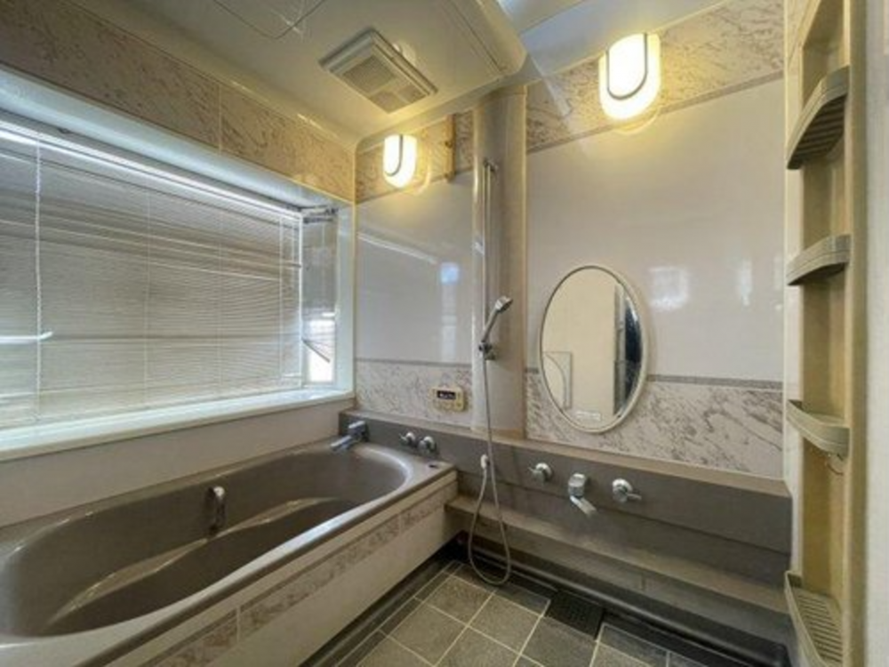 浴室はゆとりある広さが確保されており、足を伸ばしてゆったりとくつろげる空間。日中は明るく開放的なバスタイムを楽しめます。カウンターやミラーも備え、使い勝手にも優れた快適な設計となっています。