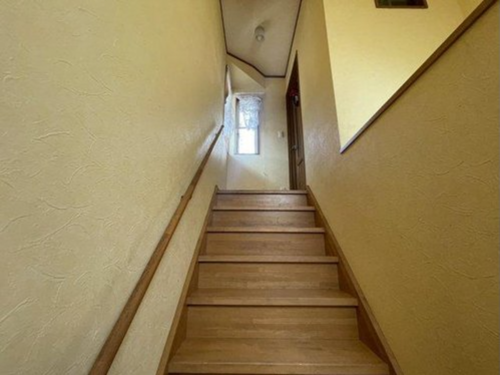 階段は手すり付きで安全性にも配慮された設計。木の温もりを感じる落ち着いた雰囲気で、日々の上り下りも快適に行えます。窓からの自然光が差し込み、明るく開放的な空間となっている点も魅力。